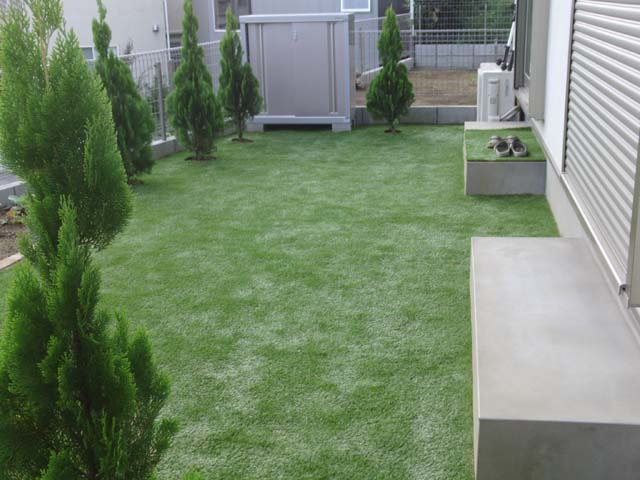 花壇や植木を活かして広いお庭もお手入れ楽々|施工事例|東京23区・千葉の人工芝施工専門店 Green Forever