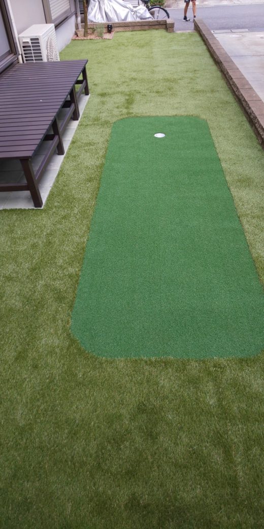 人工芝のお庭の完成です。