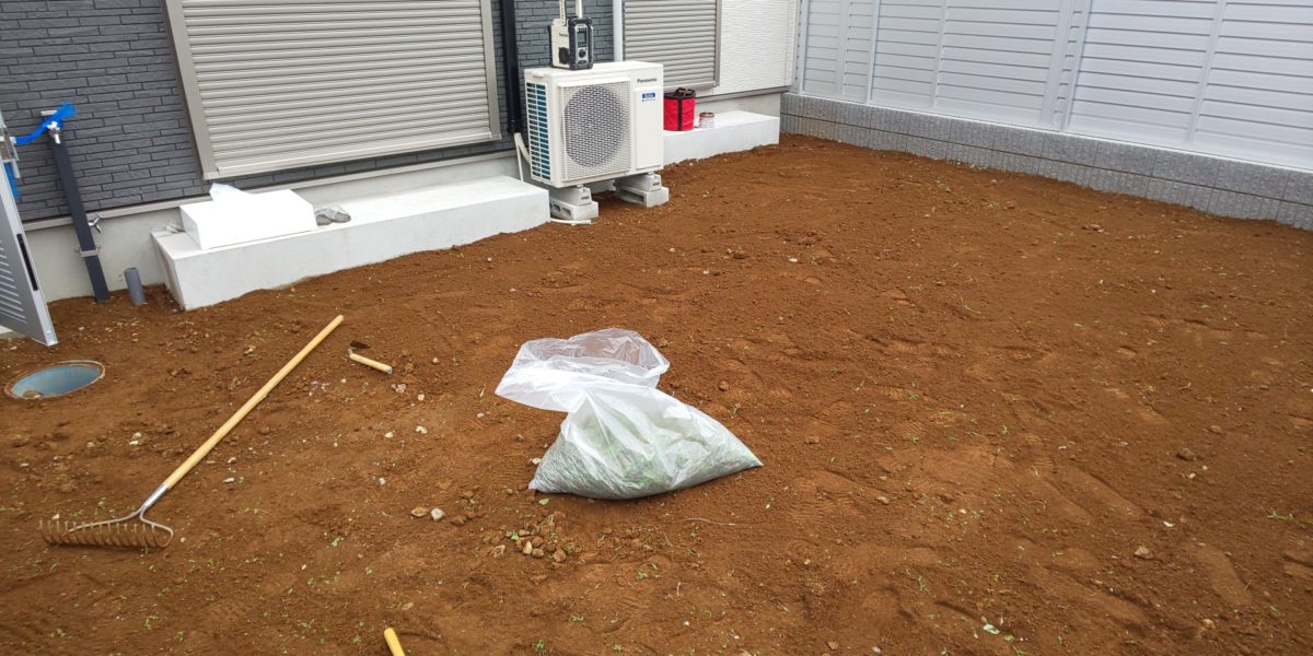 新築完成後間もないU様邸のお庭。お子様とワンちゃんが思いっきり遊べるお庭にしたいとの事でドッグランも兼ねたご依頼です。