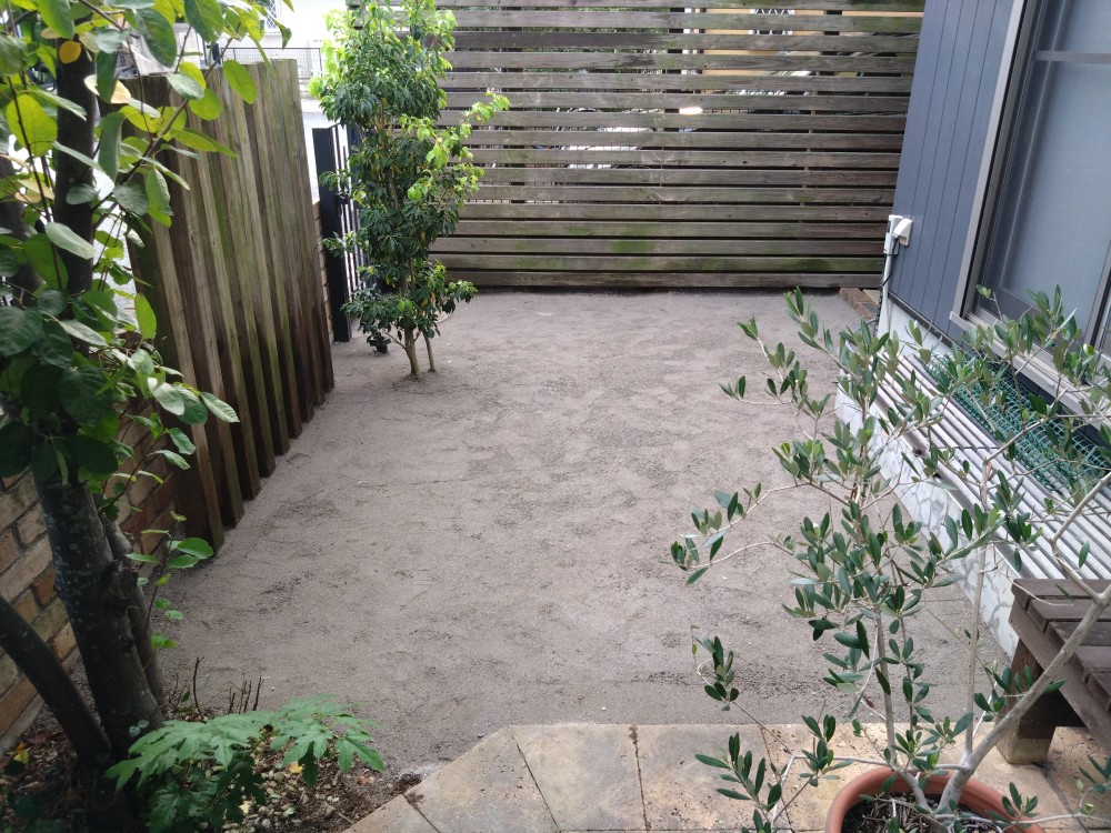 市川市のT様邸。2年前にメインのお庭を人工芝工事をやらせていただいたお宅ですが、植栽地部分も段々と鬱蒼としてきて草むしりも天然芝の管理もできないので人工芝にリニューアルしたいとの事でご依頼を頂きました。