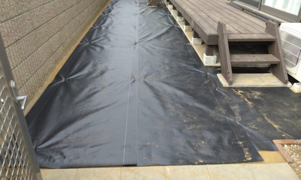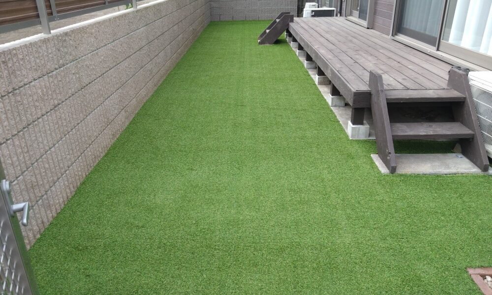 市川市のS様邸。合同会社エム・イー・エル様よりのご依頼で外構工事に合わせての人工芝施工のご依頼です。下地~防草シート張りまではエム・イー・エル様にての作業となりました。