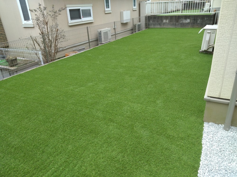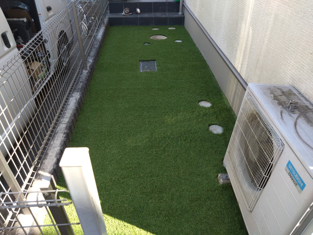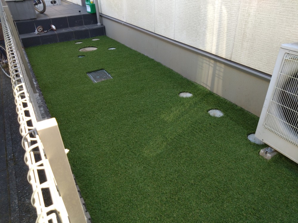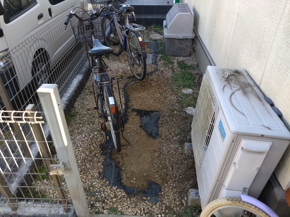 追加で自転車置き場も人工芝にしてほしいとの事でこちらも同じくやらせていただきました。