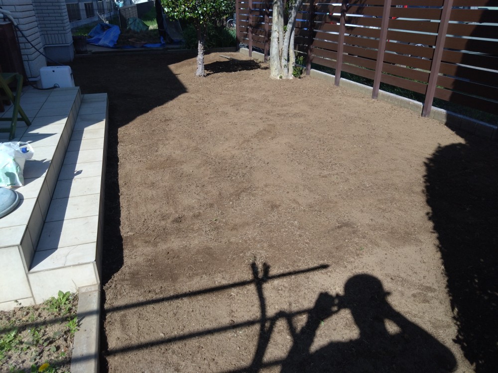 ワンちゃんも走り回れるフカフカなお庭になりましたね。