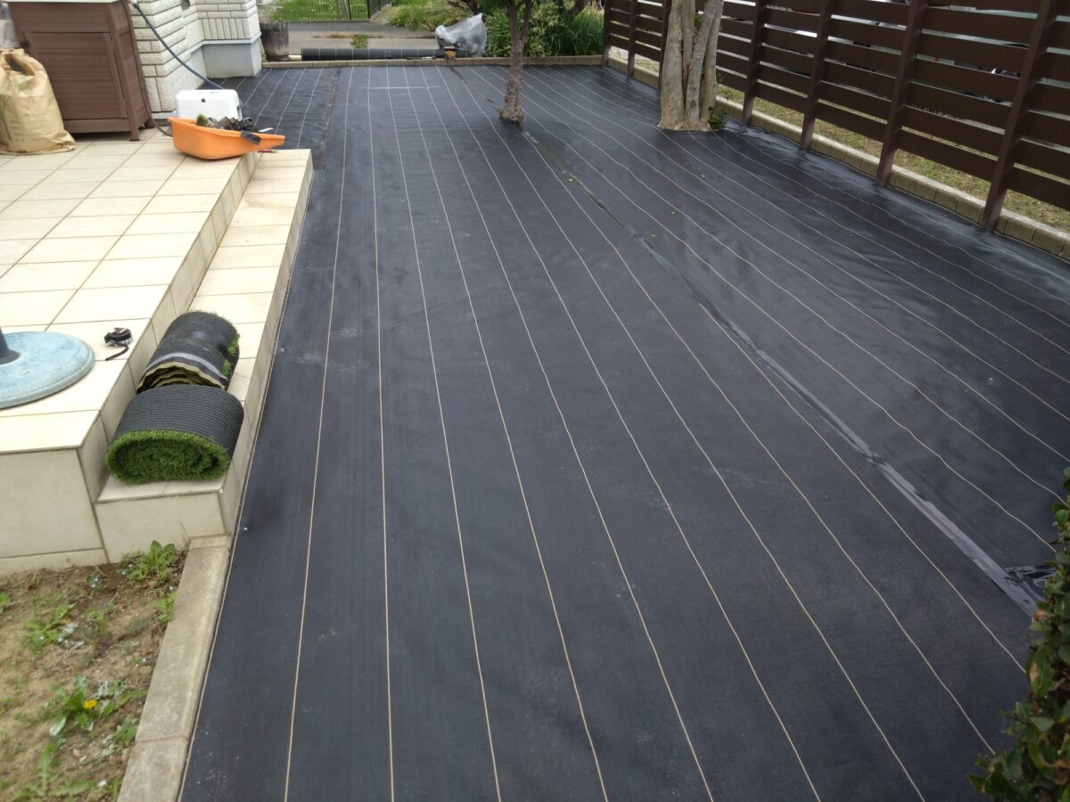 防草シートを張り込んでいきます。